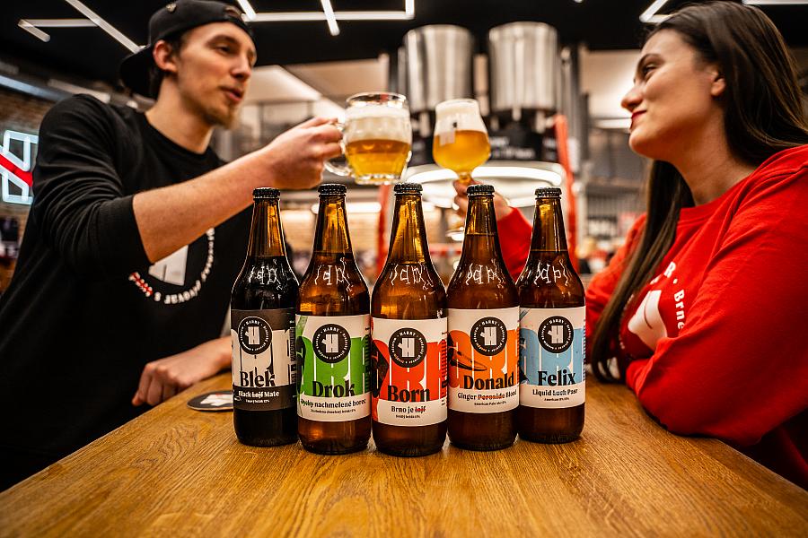 Světlý ležák BORN 11%, za studena chmelený ležák DROK 12%, za studena chmelený tmavý ležák BLEK 12%, zázvorová APA DONALD 12%, american IPA FELIX 15%. Speciály: sezónní speciály každý měsíc. Ocenění Gourmet Brno 2023 v kategorii pivnice, zařazení mezi 100 podniků v knize Brno 100 Lukáše Hejlíka.